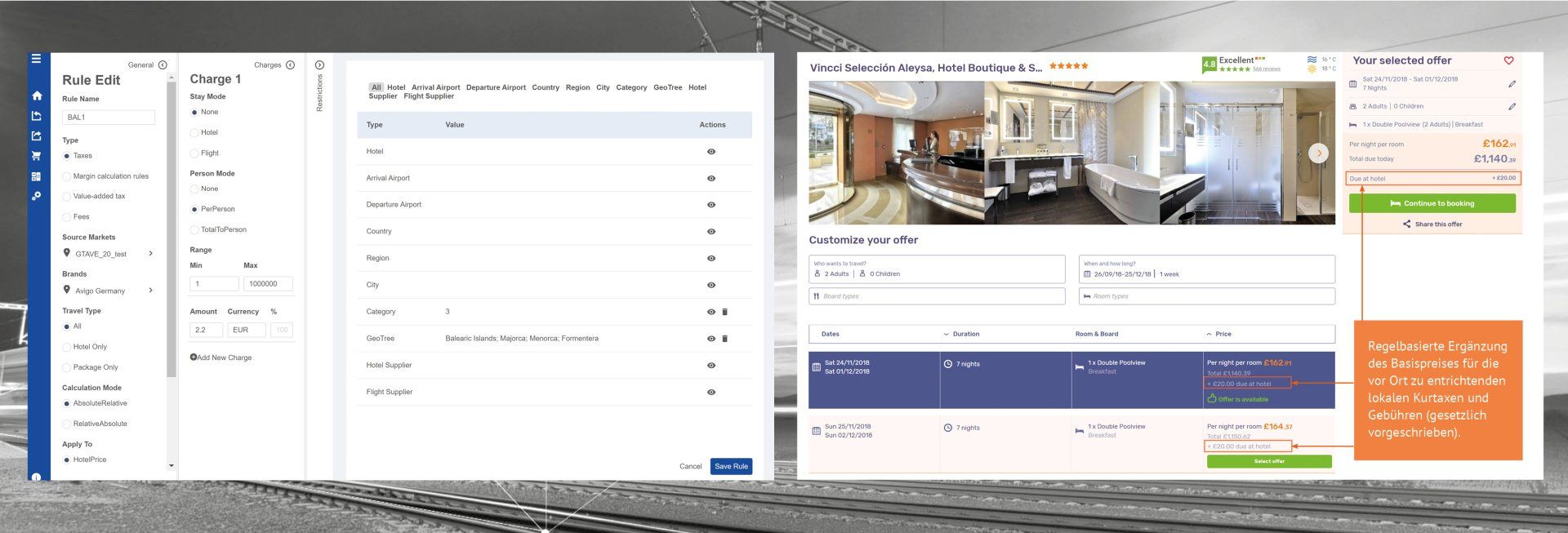 In many countries, a tourist tax is levied in addition to the accommodation price, which the guest must pay directly on site. It poses great challenges for both travel providers and price comparison systems, as it must be displayed in the order summary and booking process for reasons of competition law. There are a wide range of rules for calculating the tourist tax. Registering these, constantly managing them and adjusting them if necessary is a complex process. Our new calculation service also provides valuable services here!